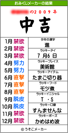 お参りはまだですが、おみくじメーカーやってみたよ!本名モザイクは当方の仕様です。
